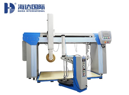 海達(dá)儀器床墊滾壓試驗機HD-F763,利用一只橫向滾動的木制六角型桶或圓柱體(兩端直徑250 mm, 中間部分300 mm), 在被測試床墊上來回滾動, 模擬人體動作以評估床墊的耐用性.