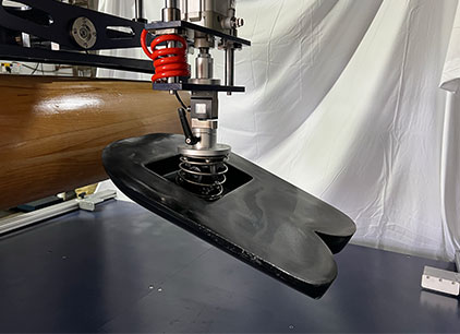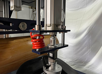 將床墊用夾具固定在試驗機平臺中心位置,采用一個滾動式加載模塊置于水平放置的床墊的加載部位,以一定頻率滾動,對床墊進行往復加載,以檢驗床墊對長期重復性滾動荷載的承受能力。按照測試標準設定好測試條件,進行各個項目的測試;軟件自動計算測試結果并保存!