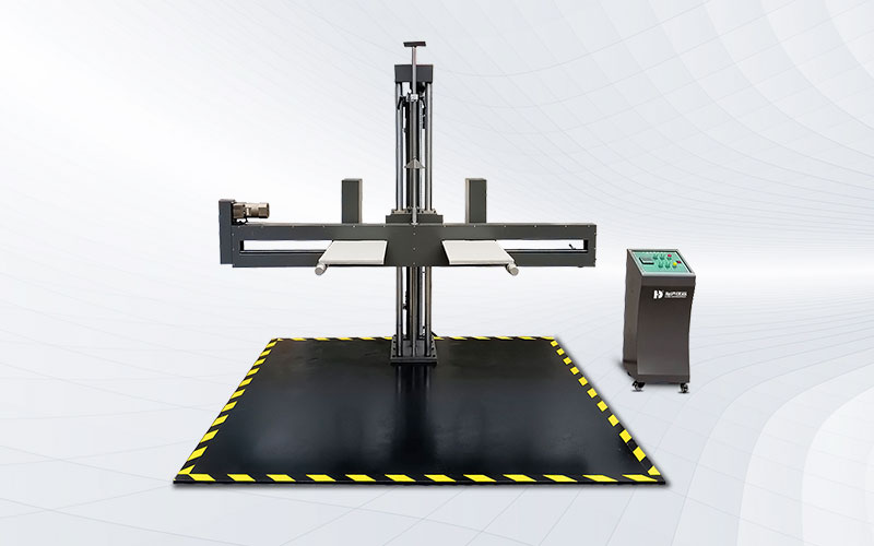 本機通過自由跌落的方式,對試件進行垂直沖擊試驗。試件可自由選擇面、棱、二個狀態進行跌落試驗,跌落測試高度可提前預置。當試件升至預置高度后自動停止定位。可根據產品的不同大小尺寸進行選擇測試托臂之間的距離,電動調寬。本試驗機釋放機構自由靈活可靠,確保試件在釋放瞬間和自由跌落途中不受任何外力影響,從而確保了試件所要求的跌落狀態。