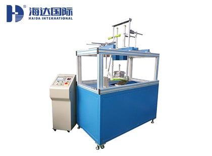 海達儀器HD-J222-1滑板車動態耐久性試驗機,其目的是模擬滑板車,溜冰鞋路況運動時底輪及車體之動態耐用之程度(亦可用來作其它類產品之試驗),為改善動態耐用性之質量提供可靠之依據。本機是通過磁粉制動器調節轉速改變滾筒之轉速來達到測試目的。