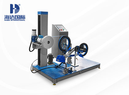 測試過程中,車閘驅動系統按標準要求使試樣處于剎車狀態,施力系統按標準要求帶動車輪,動態扭力傳感器記錄帶動車輪時產生的力值,以此來檢測兒童自行車的制動系統的強度及制動性能。