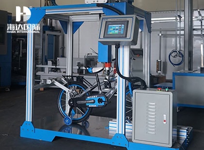 海達儀器HD-J242-1 驅(qū)動系統(tǒng)靜負荷試驗儀適用于單速系統(tǒng)下測量兒童自行車的車架、腳蹬、傳動系統(tǒng)和后輪的組合件,如有變速機構(gòu)也含在試驗范圍內(nèi),分別對左右腳蹬的中心逐漸施加一定的力,并保持15s,檢查是否有損壞現(xiàn)象。